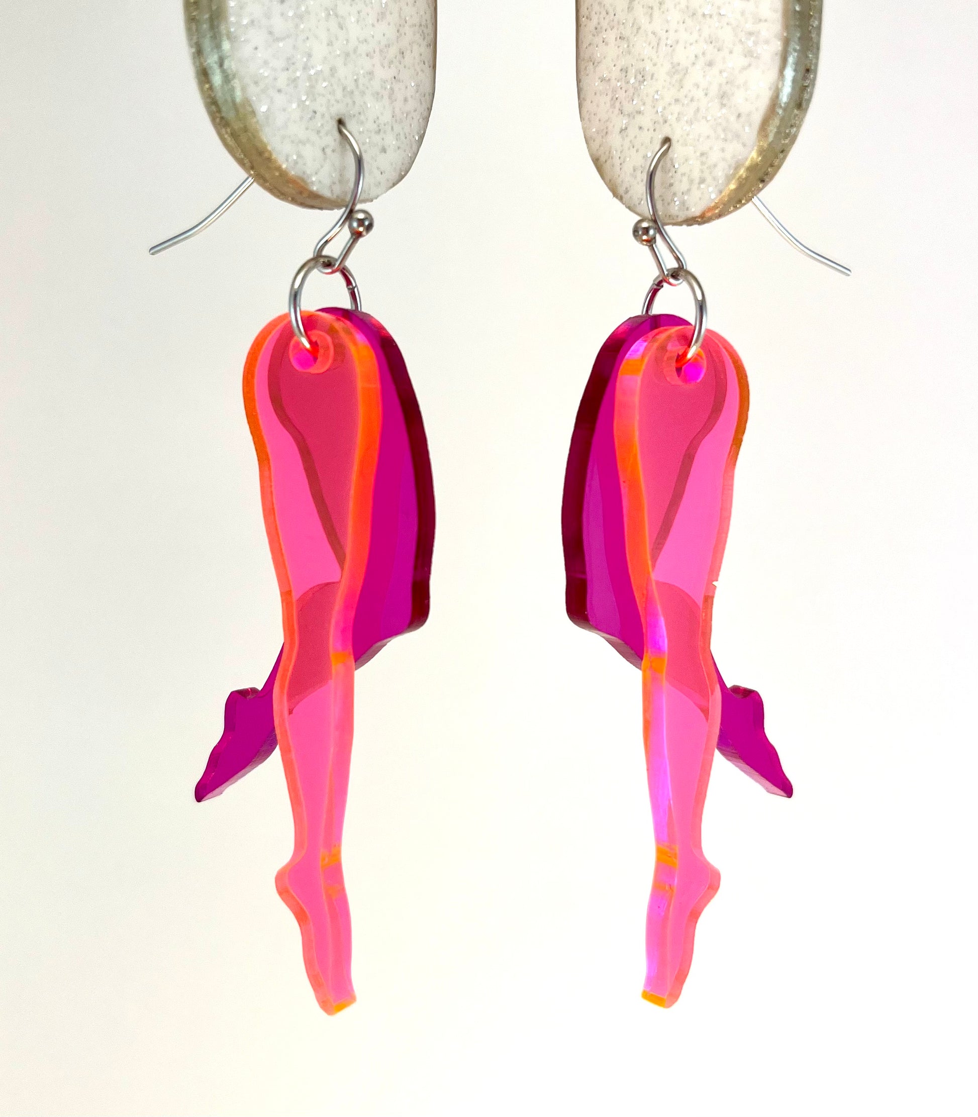 Legs are cut from 1/8" (2mm) acrylic. Hypoallergenic stainless steel metal. Choose silver or gold color.